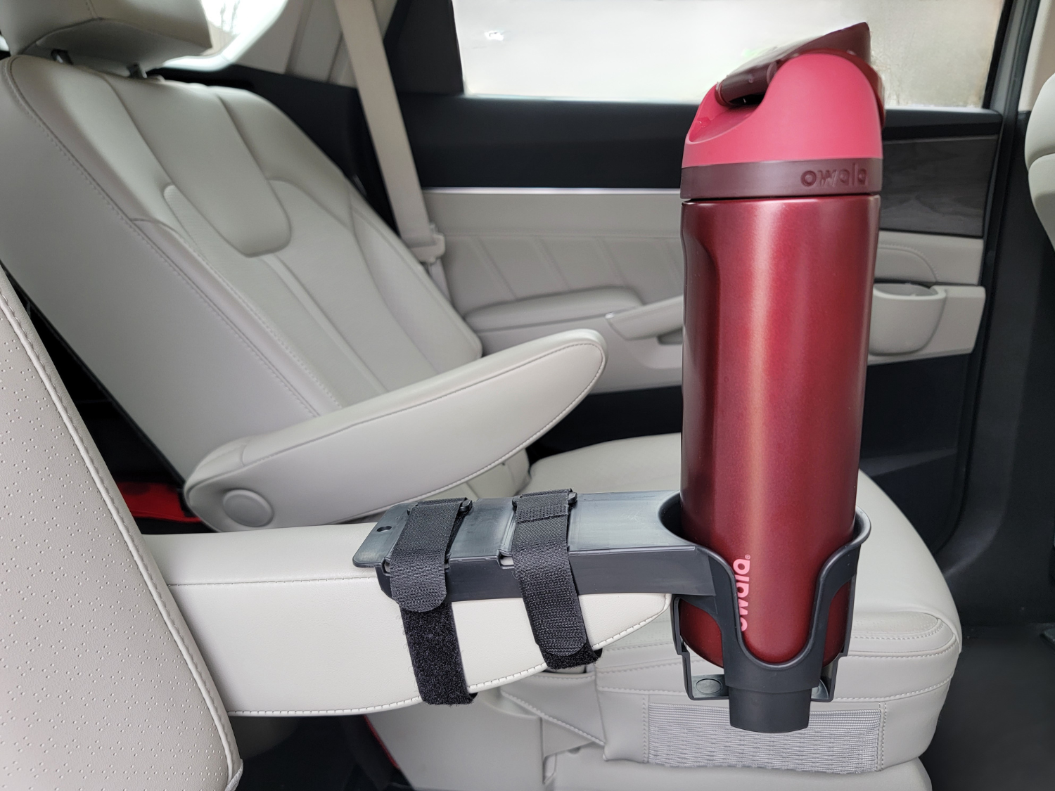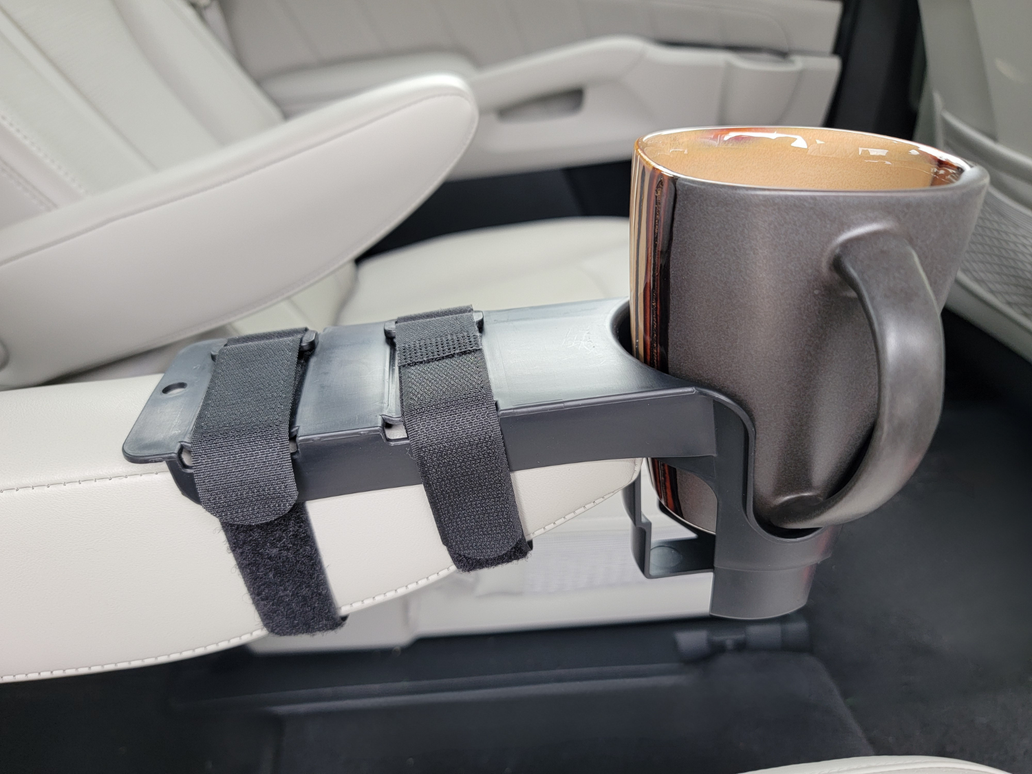 Comes with two strong hook and loop straps to thread through the openings of the cup holder and around the bottom of your armrest.